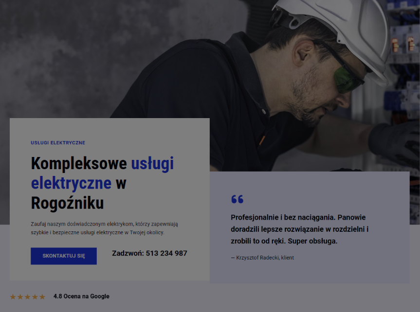 Każdy element ma cel: zdobyć telefon, email lub umówić spotkanie. Zero rozpraszaczy.